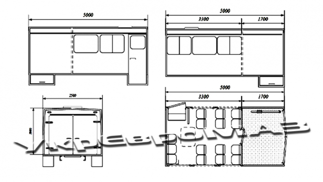 2) пасажирські двері – 1 шт. (Обладнані замком автомобільного типу)