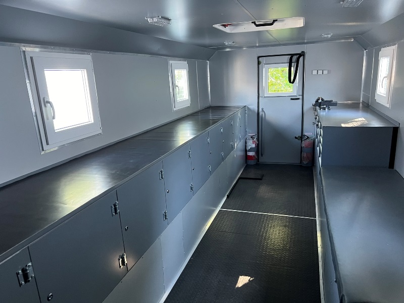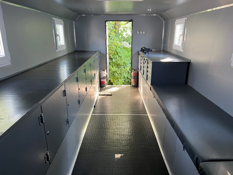 Вхід в приміщення фургона із задньої сторони оснащений висувною драбиною; широкі ступені з перфорованою, перешкоджаючою ковзанню поверхнею і знімним поручнем;
