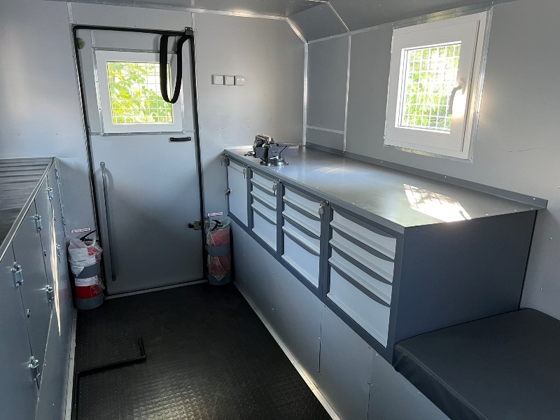 Сейф для зберігання засобів ініціювання (Відповідно до Наказу МВС України № 622 від 21.08.98 (чинний, 20637-98, поточна редакція від 16.02.2016, підстава 20161-16) «Про затвердження Інструкції про порядок виготовлення, придбання, зберігання, обліку, перевезення та використання вогнепальної, пневматичної, холодної і охолощеної зброї, пристроїв вітчизняного виробництва для відстрілу патронів, споряджених гумовими чи еквівалентними за своїми властивостями метальними снарядами несмертельної дії, та патронів до них, а також боєприпасів до зброї, основних частин зброї та вибухових матеріалів» пункт 15.1.5.2. …У передній частині кузова (у правому нижньому кутку) розміщений ящик (відсік) для засобів ініціювання з дверима для їх завантаження із зовнішнього боку кузова. Цей ящик (відсік) зсередини оббитий м’яким матеріалом (гумою, товщиною 5 мм.). Конструкція ящика (відсіку) виключає передачу детонації вибуховим речовинам у випадку непередбаченого вибуху найбільшої кількості засобів ініціювання… ) (ДхВхІІІ) 500x600x650 – 1 шт.