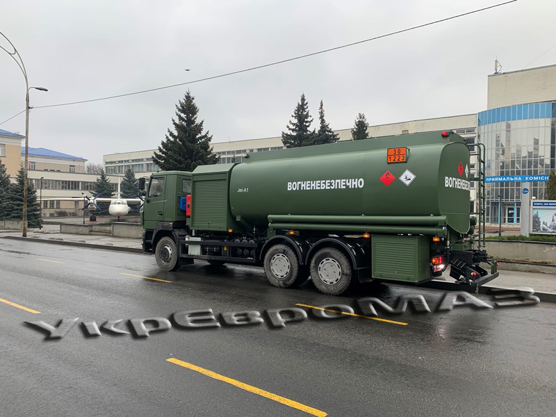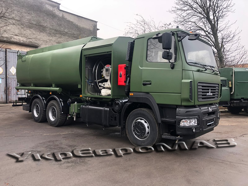 Кабіна та цистерна пофарбовані у камуфляж.